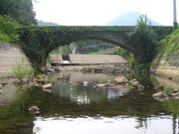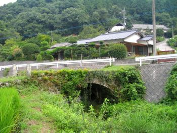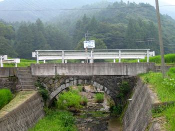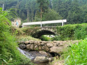 | 松本橋 宇佐市大字山袋 橋長:5.0m 橋幅:2.4m 径間:4.1m 拱矢:1.9m 架設:昭和5年頃 石工も型枠大工も地元の方だそうです。 石は松本さん方から南西に見える山から切り出されたものだそうです。 ![]() 佛橋を渡り、200m右手、松本さん宅の前に架かっています。 |
