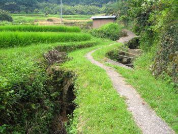 | 床並1号橋 宇佐市大字麻生 岳ノ首 橋長:3.5m 橋幅:2.1m 径間:1.6m 拱矢:1.4m 麻生3号橋からさらに350m進み左手の小道を20〜30m進んだところに架かっています。 |