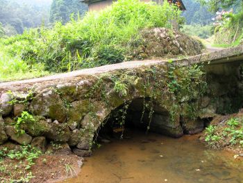 床並2号橋 宇佐市大字麻生 岳ノ首 橋長:3.0m 橋幅:1.7m 径間:1.7m 拱矢:0.9m 床並1号橋から山手に20mくらい進んだところに架かっています。 |