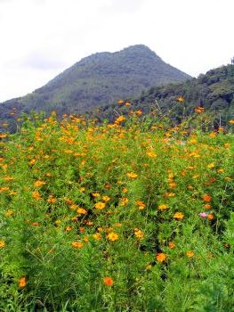 米神山(475m)とコスモス 安心院町 房ケ畑 |