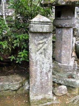 | こしき石(暴風石) 米神山に向かって立っています。 これは何だろうか?と思っていたところ、帰って佐田京石の案内文を読んでみると、この石のことが記述されていました。 この左手奥に滑川2号橋があります。 |