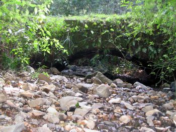 | 黒武者橋 入来町浦之名大馬越 黒武者川 橋長:3.4m 橋幅:2.6m 径間:3.4m 拱矢:1.9m 2度目の挑戦でしたが、今回も苦戦の上ようやくたどり着きました。 入来町役場から国道328号線を5Km南下、黒武者口バス停右折。 橋を渡り、120m先T字路を右折、80m先民家の手前を左折、200m先右手にあります。 |