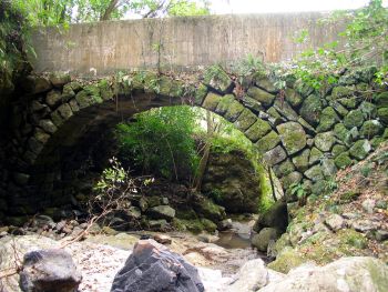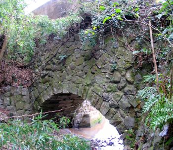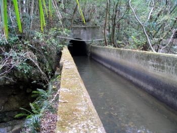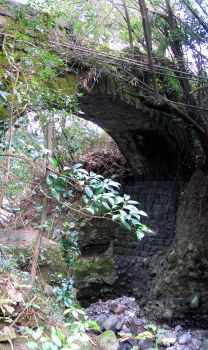 | 旧桂懸井路毒水(きゅうかつらがけいろ・どくみず)水路橋 宇佐市大字山本 毒水 橋長:13.5m 橋幅:1.9m 径間:6.5m 拱矢: 架設:昭和17年 |