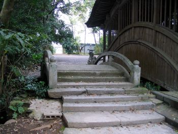 薦神社参道橋 中津市大貞 橋長:4.0m 橋幅:2.6m 径間:3.2m 拱矢:1.1m 架設:昭和8年 国道213号線(旧国道10号線)中津港入口交差点から県道697号線で2.1Km南下したところに薦神社があります。 |