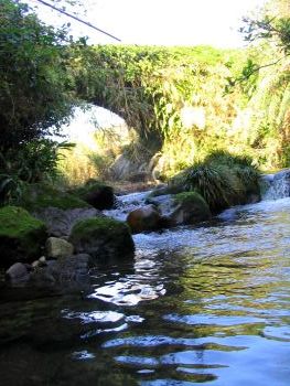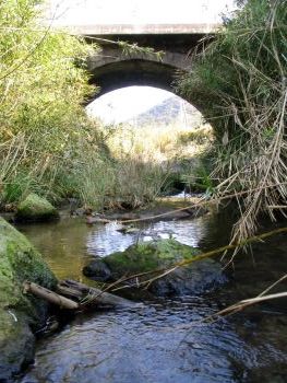 | 久木野(くきの)橋 加世田市津貫 花渡川 橋長:10.3m 橋幅:3.5m 径間:6.4m 拱矢:3.2m 架設:明治40年 |
