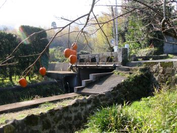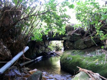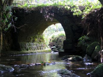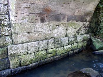 | 内布清水(うちぬのしみず)橋 加世田市内布 内布川 橋長:4.7m 橋幅:3.5m 径間:1.6m 拱矢:2.0m 架設:昭和5年 二径間桁橋 |