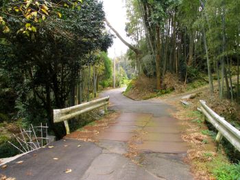 竹田神社太鼓橋2から国道270号線を500m南下、橋の手前を市道に右折。2.7Km先左手案内標柱から左下コンクリート舗装の道を下ったところに架かっています。 |