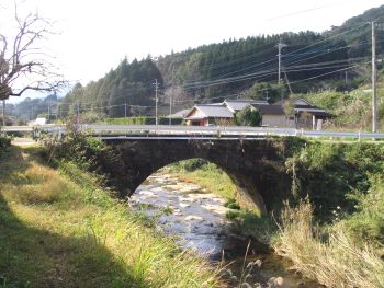 | 干河(ひご)橋(小籠橋) 加世田市津貫干河 干河川 橋長:5.0m 橋幅:4.0m 径間:4.7m 拱矢:2.5m 架設:大正5年 |