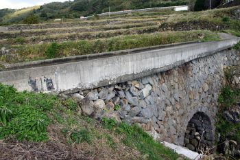 | 面無(おもなし)橋 南高来郡北有馬町今福名 面無 橋長:12.0m 橋幅:3.4m 径間:3.9m 拱矢:3.0m 環厚:0.43〜0.5m 架設:江戸末期〜明治初期 |
