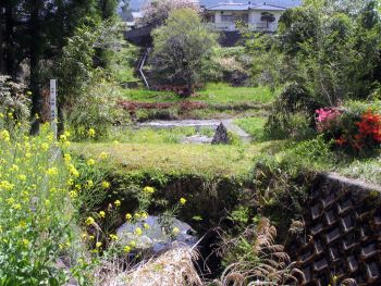 長峰2号橋 五ヶ瀬町鞍岡長峰 橋長:3.0m 架設年:明治13年頃 この方のお宅の裏にかかっています。色々とお話を聞かせて頂きました。 何年か前、大分から熱心な方がみえたそうです。多分岡崎文雄さんではないかと察します。 萩原橋より国道265号線へ戻り、4Km南進、長峰入口バス停より右折、1.1Km先右折、突き当りのお宅の裏に架かっています。 |