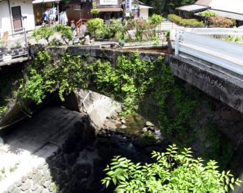 戸の口橋 五ヶ瀬町三ケ所戸の口 橋長:8.5m 架設年:明治以前 この橋は見つけるのに苦労しました。上から見るとどう見ても橋が架かっていますようには見えない場所です。何度か行ったり来たりして探し、山手に回ってみると谷川があり、国道と平行に架かっていました。下流側はボックスカルバートで拡幅してあり、すぐ三カ所川に流れ込んでいます。 国道218号線、町役場の西300m地点に架かっています。 |