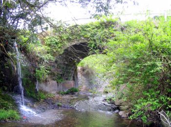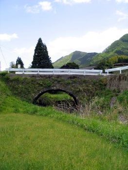 | 下番橋 熊本県阿蘇郡蘇陽町 萩原橋を探しているうちに、蘇陽町に入り込み、偶然行き着きました。 標柱には 「史跡 石橋 眼鏡橋 文化年間に架す 石工、岩永三五郎 通称 三五郎の一号橋と伝有り」 蘇陽町教育委員会 蘇陽町文化財保護委員会 とあります。日向街道で昔の一級国道です。 近くの案内板には「天保六年」とありますが、どちらが本当でしょうか? 国道218号線、馬見原より国道265号線へ、南へ470m右折、五ヶ瀬川を渡りすぐ右折、100m先右下旧道に架かっています。 |