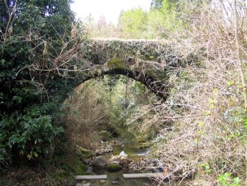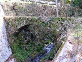 近所の人も石橋であることは分からないみたいです。 さっき尋ねた郵便配達の方にUさんが教えています。 広内橋からそのまま進み橋を渡り上り坂、ぶつかった道を右折、坂を上り、下りきったところに架かっています。 |