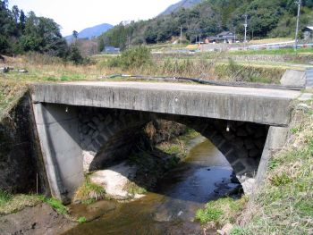 轡地(くつわじ)2号橋 本耶馬溪町大字折元 轡地 橋長:4.0m 橋幅:1.8m 径間:3.6m 拱矢:1.0m 架設:不明 鳥越橋から分岐している町道を東へ800m、左手に架かる。 この後、県道667号線・県道684号線沿線へ |