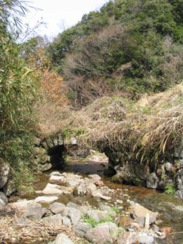 | 餘石眼橋(あまりせきがんきょう) 本耶馬溪町大字東谷 餘 橋長:10.9m 橋幅:2.7m 径間: 拱矢:3.1m 架設:明治45年 |