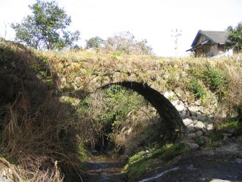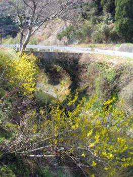 扁平な石橋です。小さいけど趣があり、一目で好きになりました。 この場所は少し分かりづらいです。 台橋より約400m東進、広い道路にぶつかるところ左折、200mくらい分岐を左下へ、道なりに進み小川を渡るところで左手に見えます。 |
