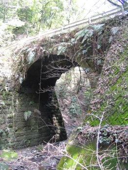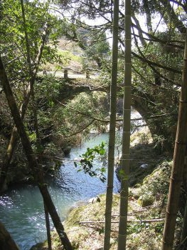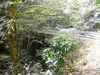![]() 鬱蒼とした山中に現役の橋として活躍しています |