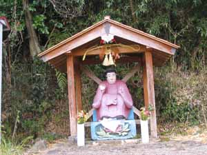 | 新田場の田の神 小林市 市指定有形文化財 建立年月日 享保5年2月9日 由来 田の神は、開田(新しく田をつくること)の記念と豊作をいのってつくられた石像で、むかし薩摩藩だったところだけにある。全国でも珍しいものである。 田の神には神像(神官)型、仏像(地蔵)型、田の神舞(農民)型、文字碑(自然石)型などがありますが、新田場の田の神は烏帽子をつけた神像型で、宮崎県内でもっとも古い田の神のひとつです。 像の後ろに「享保五寅夭 二月初九日 奉造立田御神御体 施主 本田権兵衛」の銘文がきざまれています。享保五(1720)年は江戸時代の中ごろで、全国各地で開田がさかんにおこなわれていました。 小林市は神像型田の神の発祥の地といわれ、市内にのこっている田の神の約半数は神像型です。これらは霧島信仰の影響を受けてつくられたものと思われます。 小林市教育委員会 |