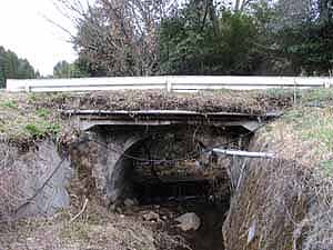 | 成政橋 牧園町万膳成政 万膳川 橋長:11.0m 橋幅:4.2m 径間:11.0m 拱矢:4.6m 架橋:昭和15年4月 大窪橋から400m西を左折、700m先右手に架かっています。 |