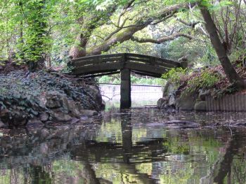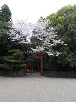宮崎神宮正面右手に稲荷神社の鳥居があります。それをくぐり、藤棚の方へ行く途中の池に架かっています。 |