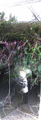 赤谷1号橋 宮崎県東諸県郡高岡町浦の名赤谷 暗渠の扱いになっているため、正式な名前はないそうです。 草と藪に妨げられ、また下に降りることができず、このような写真しか撮れませんでした。 高岡町、赤谷で国道10号線と、国道268号線が交叉します。そこから200m東を南に60m進み、県道359号線とぶつかる地点です。 |