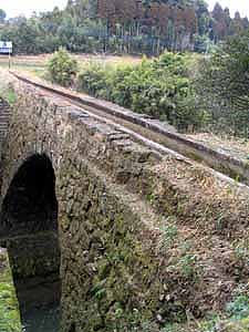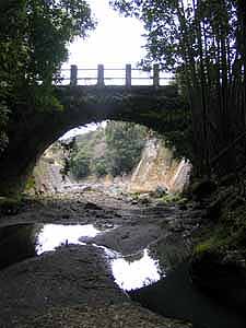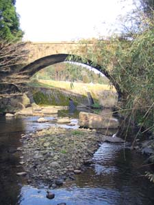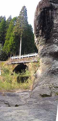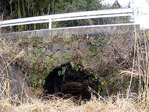 「弘化4(1847)年鹿児島の豪商、森山新蔵が私費を投じて架けた水路橋で、その前は木造樋で通水していましたが、洪水の度に補修が必要で、また人馬は渡れないため上流の吊り橋を渡らなければならず危険でした。石橋の完成後、人馬の便は画期的によくなりました。森山はその功績により武士に取り立てられましたが息子の新五左衛門が京都の寺田屋事件で殺害されたことに関連して遠島となり、大丸開田は没収され、新蔵も責任を感じて切腹自決しました。」 宮崎県教育委員会 小林市教育委員会 |