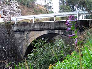 | 永久井野橋 小林市黒仁田 岡原川 橋長:9.8m 架設:昭和4年3月 市指定史跡かくれ念佛洞の入り口の場所にあり、250mほど奥に洞がある。 川原田橋から県道410号線をさらに約2Km北進、左折約500m先橋の手前左手に看板あり、そこから下へ降りる。 |