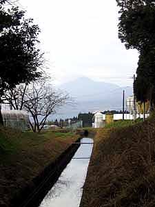 水路の南側には、はるか韓国岳(1999m)が見える 永久井野橋から広域農道を東に約1.3Km、児童プール手前を左折、300m先右手に架かる。 |