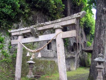 市用横穴古墳群 市指定史跡 「市用平園天満社横の岩壁にある横穴古墳群は、古墳時代後期六世紀末頃のものと考えられています。 天満社自体は、横穴古墳群よりかなり後にできたもので、古墳群と直接の関わりはありません。 古墳は、調査によって11基が確認されていますが、いくつかは崩壊しており明らかに横穴と識別できるのは5基ほどです。 羨門(せんもん:墓の入口)上部に切妻屋根形の掘り込みのある横穴古墳が1基見られますが、これは後世に施されたものとされています。 羨門入口は、およそ60cm四方ですが遺骸を収める玄室内部には何も残されていません。おそらく盗掘などによるものと思われます。 この横穴古墳は、通常の古墳と比べると簡単な造りで、埋葬された人々は、竹田市菅生にある七ツ森古墳群のように強力な権力者ではなく村や集落の有力者程度の地位の人たちだったと考えられます。 市内には下木石仏、上坂田の間崖仏と素朴ではあるが、心を動かされる遺産があるのは、この地域の文化を考える上でなおざりにできないといえるでしょう。」 歴史と文化を考える会 |