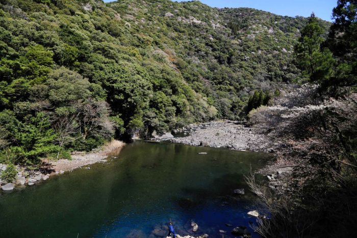 吊り橋から約1Km南、本庄川左岸の斜面がきれいでした