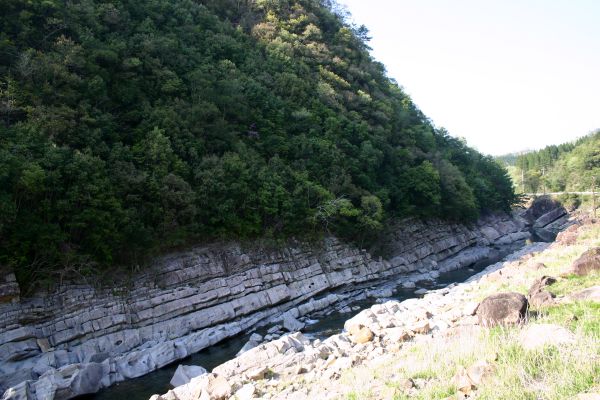 「舟方轟は国道388号線に沿った五十鈴川の名所で、ひときわ目を引く奇岩が群れています。この奇岩は約1億年前の地層が急流によって侵食されてできたもので、見るものを圧倒します。季節ごとに、山つつじ、岩つつじ、紅葉などが岩場に色を添え四季を通じて多くの人に親しまれています。又対岸には、大正時代に行われていた石炭の採掘現場跡が残っており、当時地元住民の生活に利用されていたそうです。故郷を愛する公民館活動の一環として対岸へ向けてこいのぼり揚げや舟方轟周辺の河川美化運動等を行っています。 安全運転でお帰り下さい。」