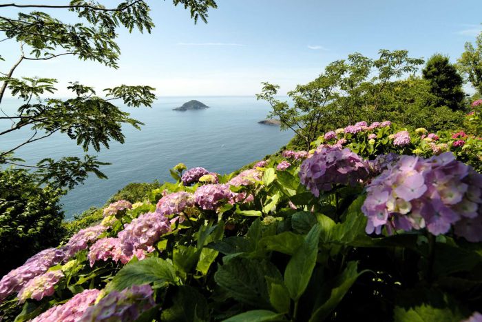 「20万平方メートルに及ぶ初夏の『桃源郷岬』が、200万本もの色とりどりのアジサイで埋め尽くされる光景は圧巻です。