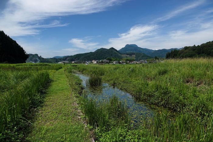 川坂湿地は、山ノ内谷川から川坂川の下流に広がり、川のほとりからの湧き水や谷からの水が流れ込んでいます。