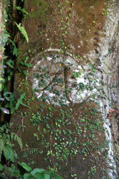 「高さおよそ150センチ、幅100センチの自然石に彫られた磨崖仏で、台座高30センチ、仏像の高さ90センチほどである。