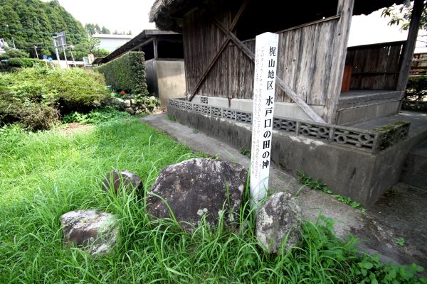 「このタノカンサァは風化が激しいですが、田の神舞型(農民型)といわれています。当地区を見守っている守り神といえる存在です。」