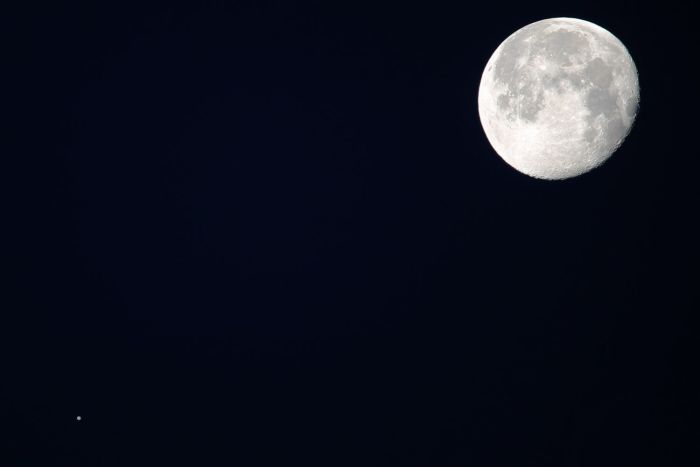 西の空には月と木星