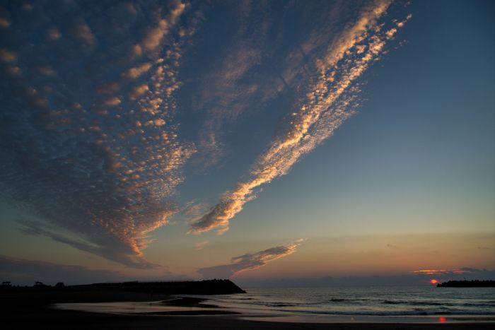 日の出前の朝焼け、日が出る辺りには雲がありません 5時38分