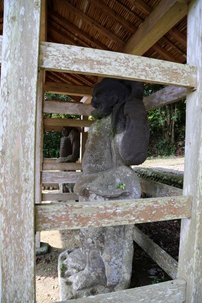 左に鎮座する仁王像は、大迫寺の山門にあったものと考えられている。損傷・劣化の激しかった仁王像の履屋は、平成14年度宮崎県「神話・伝説の道快適周遊環境整備事業」にて改修工事を行った。