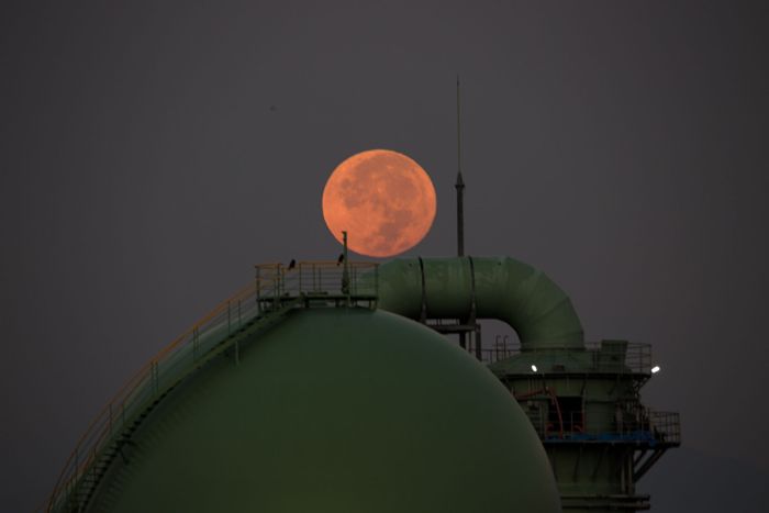 見当をつけた方角にカメラを向け、ISO感度を10000に上げると真っ赤な月が写りました