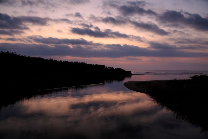 早朝、いつもの石崎川河口で日の出を待ちました。天の川が綺麗です