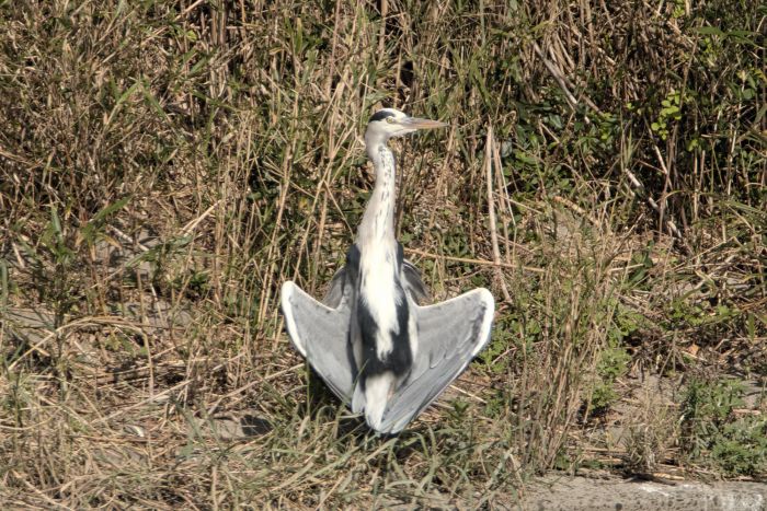 クロツラヘラサギ(左)、ヘラサギ(右)