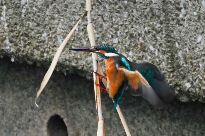 こちらへ飛んでくるイソシギを撮ったら、カワセミが写り込んでいました