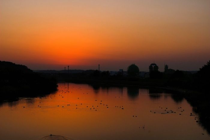 曇り空でしたが、西の方角が焼けていましたので、いつもの場所から撮影