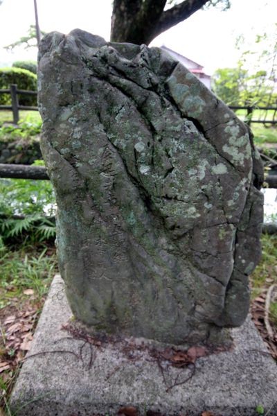 法元墜道から流れ込む豊富な水が作る池の中島に、記念碑が建っています