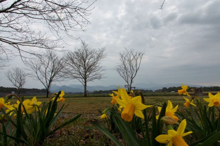 この時期、北側には菜の花が咲いていました、向こうに鬼の窟古墳