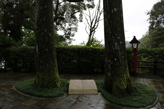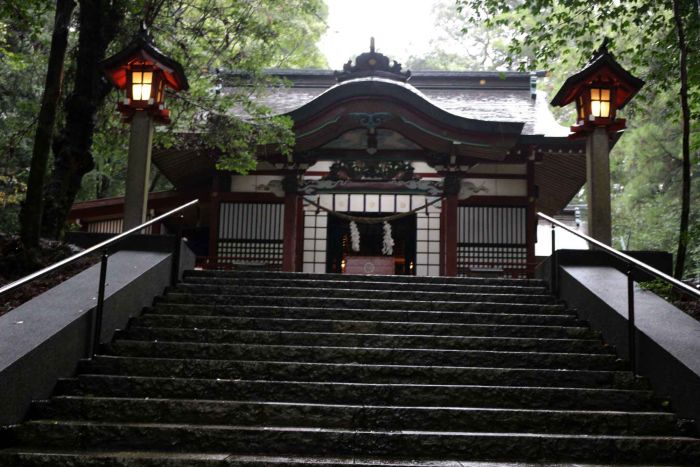 度重なる霧島山の噴火により復興造営を重ねており、現在の社殿は享保十二年(1722)の造営により、幾度かの改修を経て今に至る。殿内奥には雌雄一対の龍柱が祀られ、正面には寛文六年(1666)薩摩藩主島津光久公寄の『東霧島坐(霧島の東に坐す)』の扁額が納められている。」 |