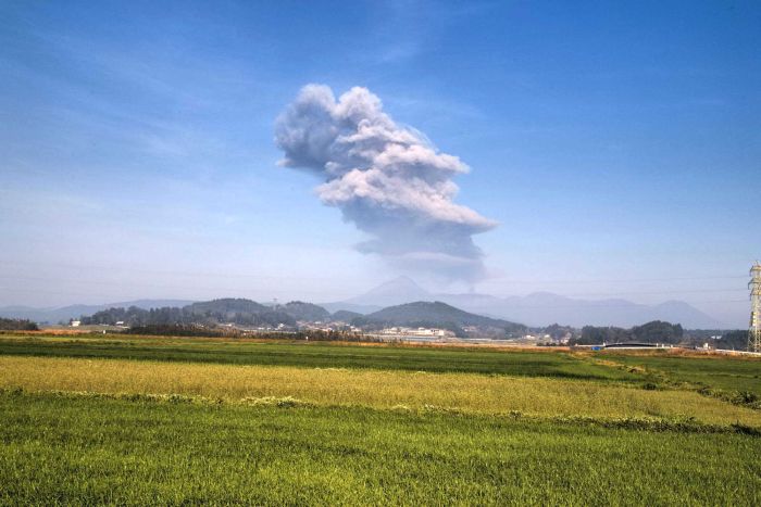 新燃岳の噴煙が見えました