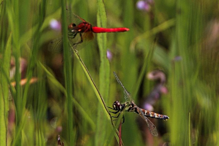 羽が赤いベニトンボ 東南アジアなどの熱帯・亜熱帯地域に分布していたが、近年次第に北上してきた