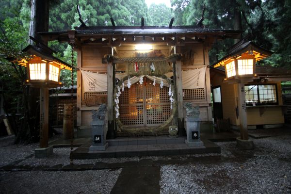 「この社は猿田彦命 天鈿女命を主神に迫天神 年大明神 興呂木山家先祖等を合祀した最古の宮とされている神社です 社名の伝説は天孫降臨の折途中に出て迎え『久志布流嶽』に御案内申し上げられた猿田彦命と降臨の神々の中に天鈿女命があり後に瓊瓊杵尊の命により猿田彦に仕えられ逢初めの契りを結ばれて荒木で庵を建て住居と定められました