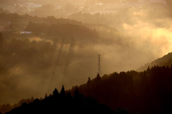 「国見ヶ丘は雲海の名所として知られています。雲海は2〜3日晴れが続き、朝晩と昼の温度差が平年度以上で、適度な温度があり、晴天で風の無い朝に見ることが出来ます。もっともよく現れる時期は9月末から11月上旬にかけてです。初日の出や紅葉各所としても知られています。